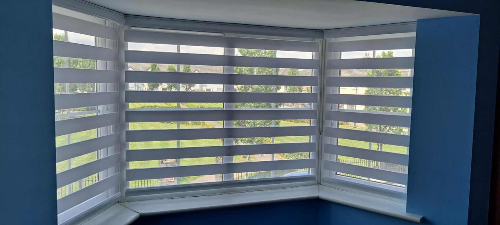 Day and night blinds can be custom-made to fit any window size or shape, including bay windows and skylights.